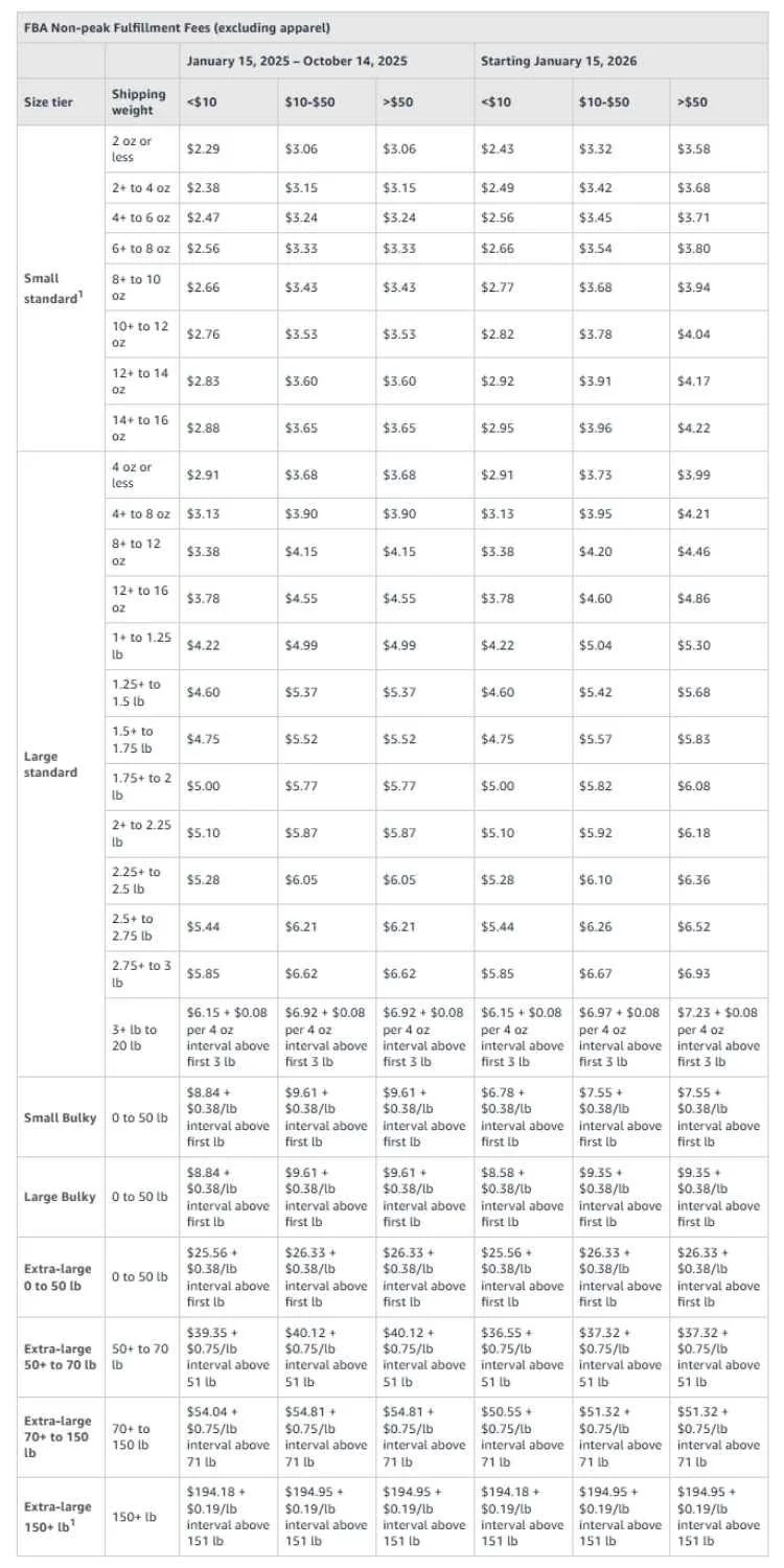 Changes to Amazon FBA Fulfillment Fee 2026
